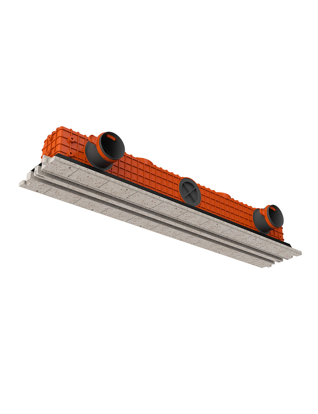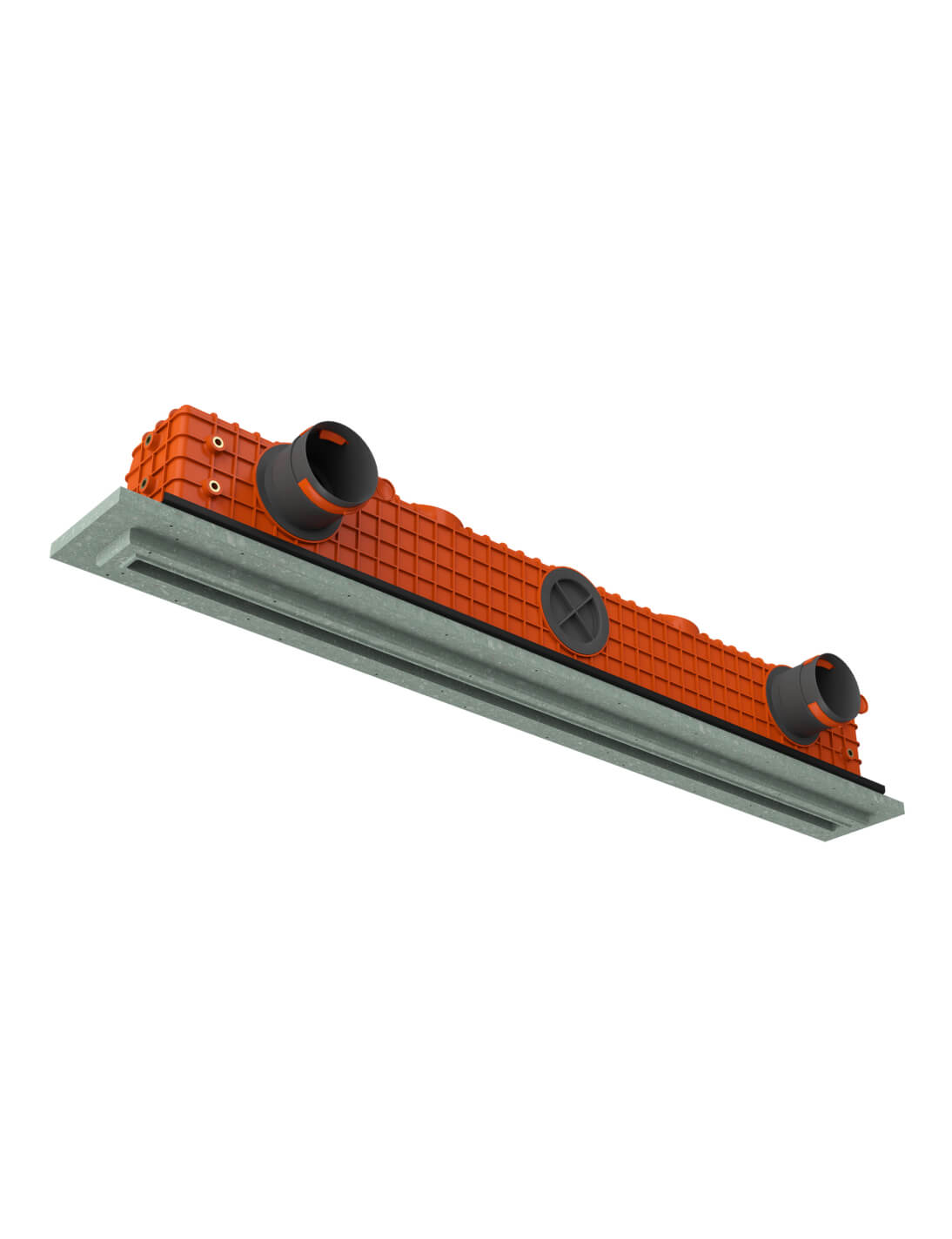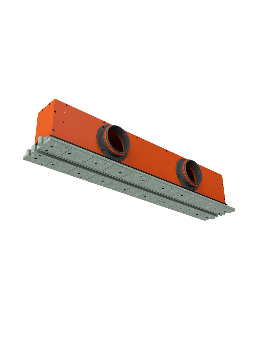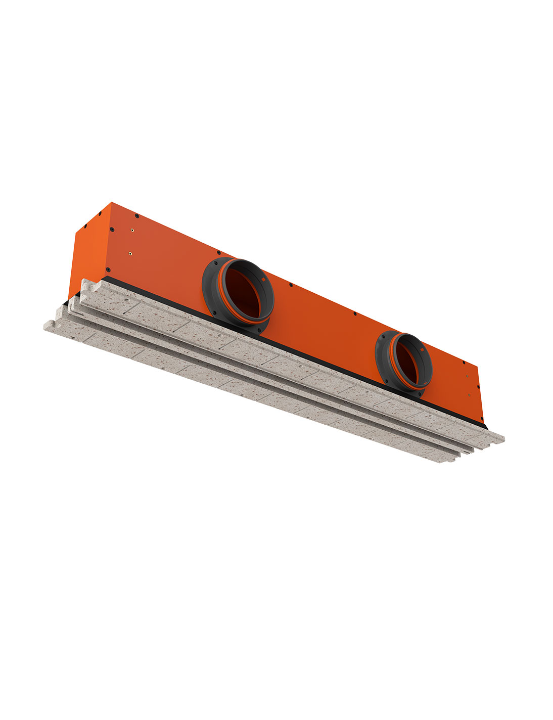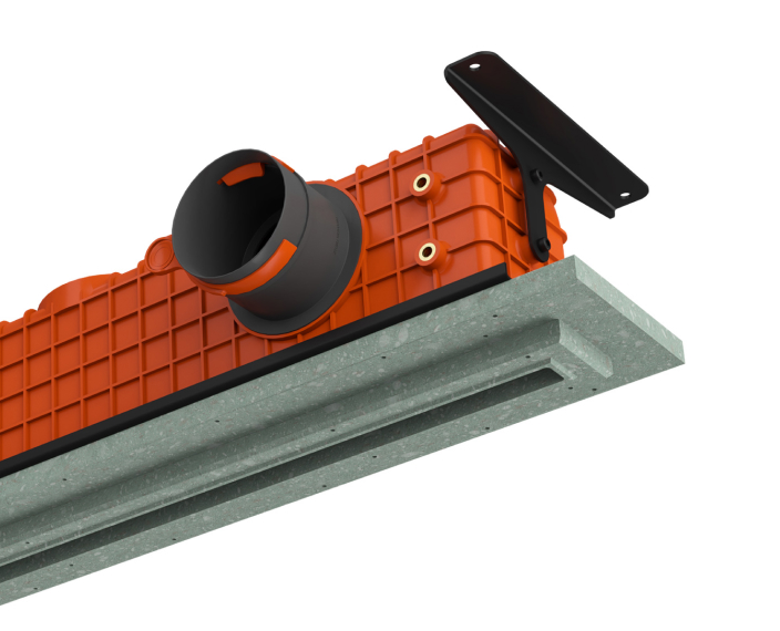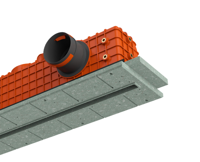 Il diffusore viene fissato al soffitto in calcestruzzo prima dell’installazione della struttura in cartongesso.